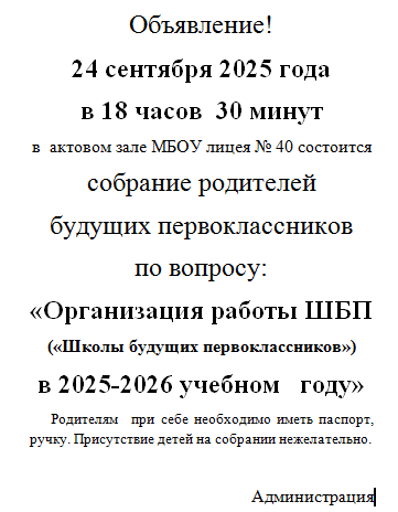 Набор в Школу будущих первоклассников, собрание родителей 24 сентября в 18.30